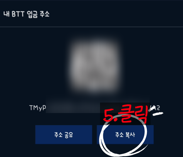 여기에 나와있는 QR 코드 or 긴 문자가 자신의 비트토렌트(BTT) 코인의 입금주소라고 생각하시면 됩니다!